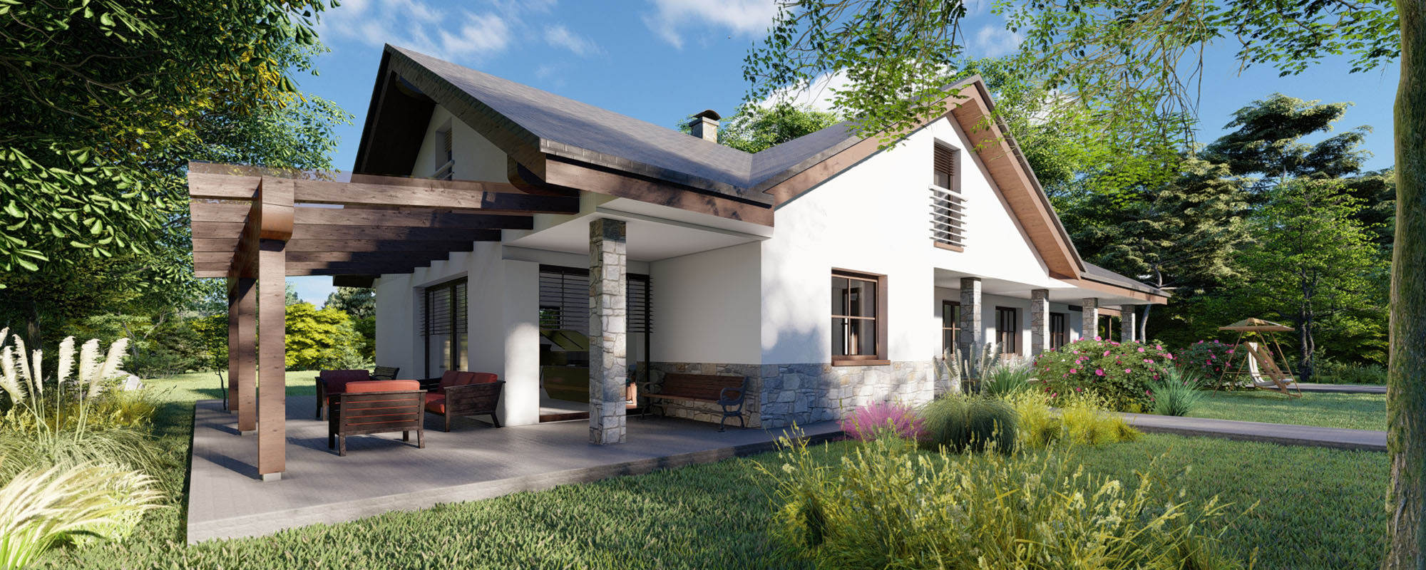 Jednopodlažný rodinný dom pre 4-5 člennú rodinu. Štúdia, Projekt na Stavebné povolenie 2019